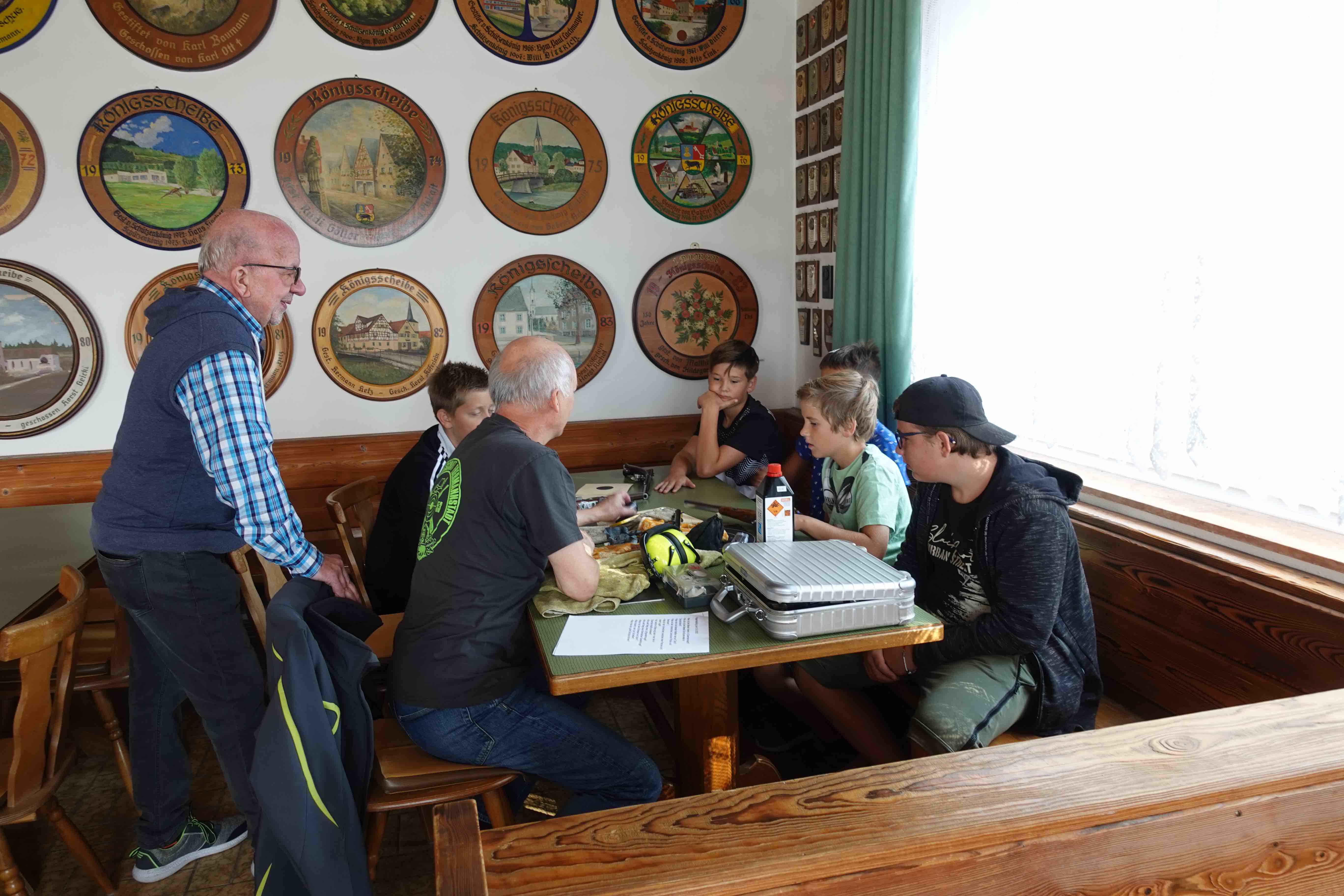 In der Theorie erfuhren sie z.B., dass die Schützenvereine zu den ältesten Vereinen überhaupt gehören (die Karlsschützengilde in Aachen wurde im Jahr 1198 gegründet, ein Bamberger Schützenverein im Jahr 1306, der Ebermannstädter Verein im Jahr 1853). Außerdem wurden die verschiedenen Kurzwaffen wie z.B. die Steinschlosspistole, die Perkussionspistole, etc. erklärt, warum Schießen ein Sport ist (es erfordert Geschick, Konzentration, Wettkampfdisziplin, Ausdauer, Kraft) und was ein guter Schütze können muss (gutes Sehvermögen (es helfen Schießbrillen), Körperbeherrschung, Innere Ruhe, Kondition, Disziplin (Vorschriften/ Regeln beim Umgang mit Waffen im Stand, etc.)).