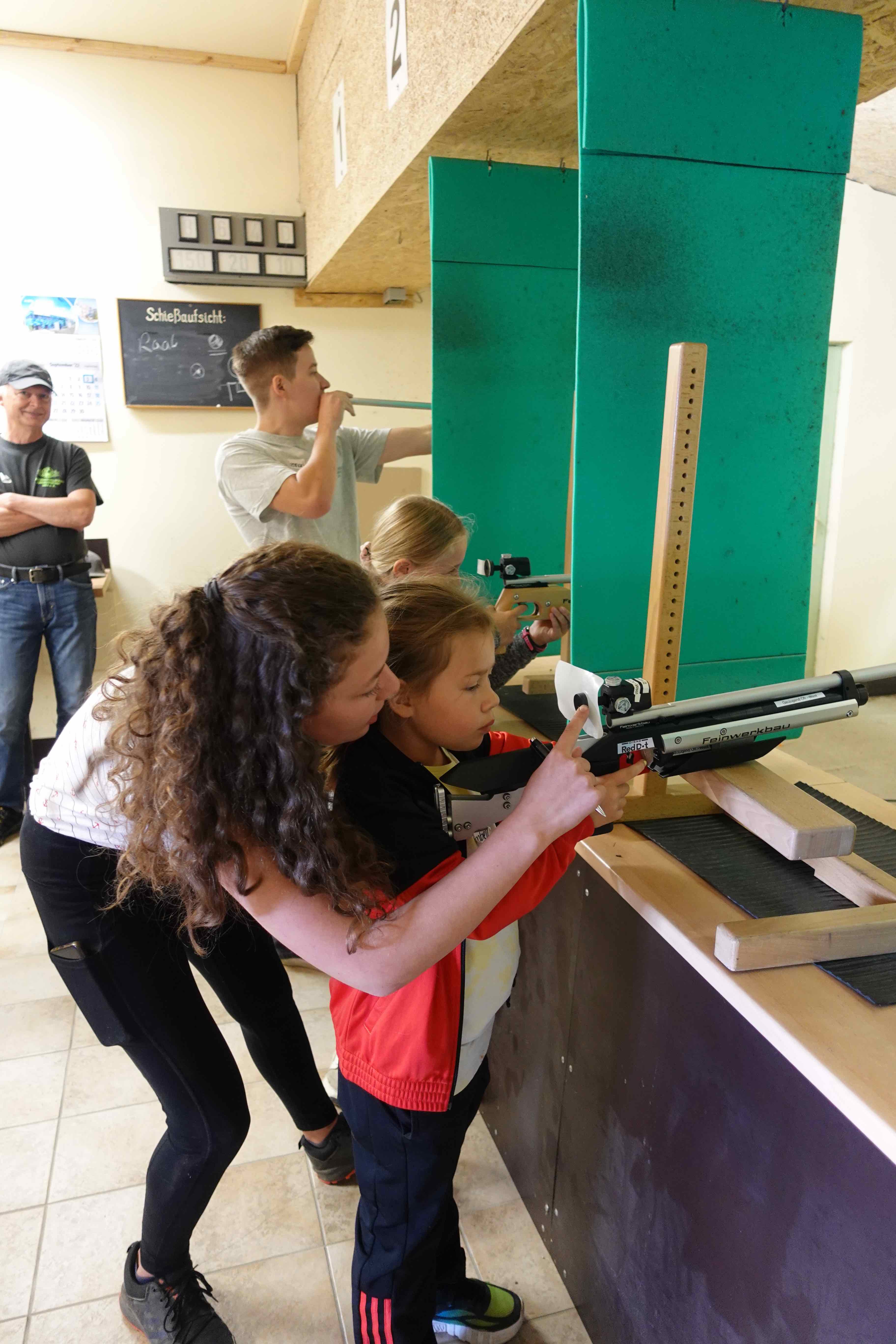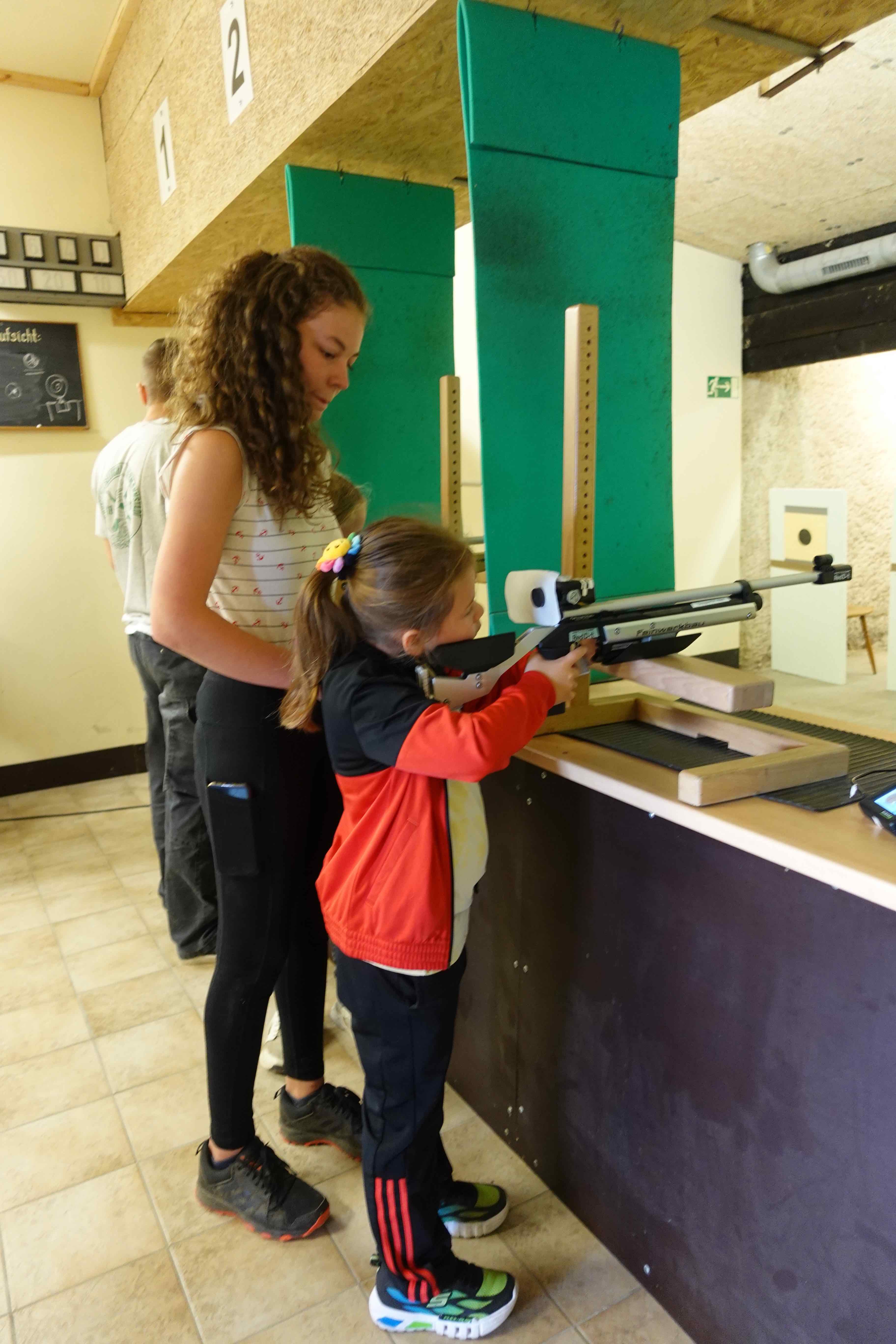 Sowohl die Mädchen wie die Jungen waren sehr interessiert, stellten viele Fragen und hatten viel Freude mit den jungen Mitgliedern des Schützenvereins und den beiden Jugendleitern Nadine Pislcajt und Cedrik Müller. Ein gemeinsames Essen rundete den Ferientag ab.