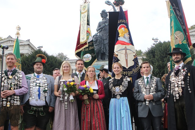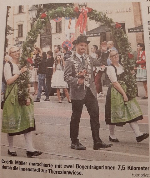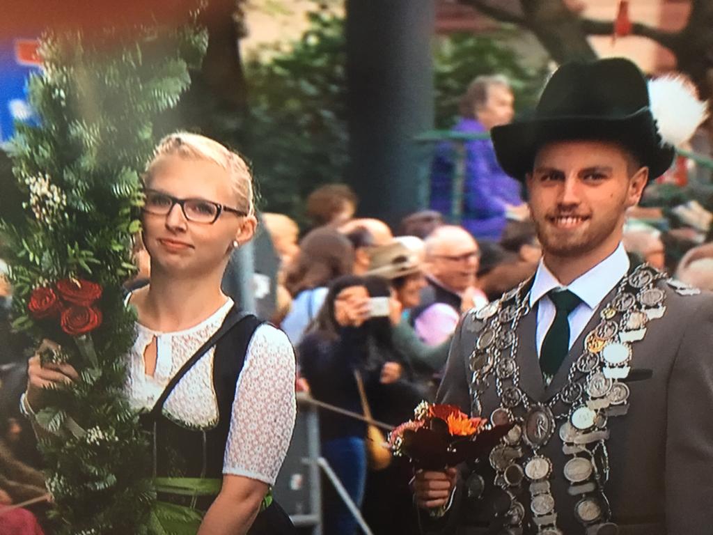 BSSB-Landesjugendkönig Cedrik Müller mit Sophia Schmitt und Nadine Pislcajt auf dem Oktoberfestumzug 2019