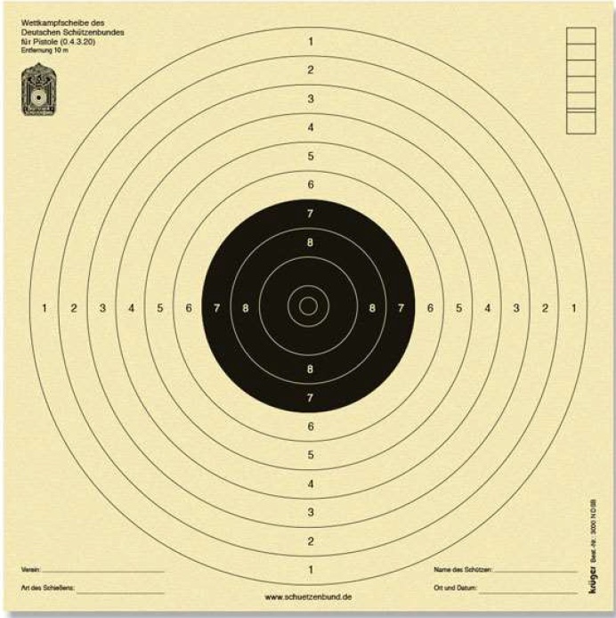 | Im Bereich der Luftpistolen wird immer auf 10m entfernte Scheiben geschossen. Der Anschlag ist stehend freihändig. Das Sportgerät darf nur mit einer Hand gehalten werden. Zugelassen sind Pistolen mit einem Gewicht von max. 1500g und einem Mindestabzugsgewicht von 500g, welche Munition des Kalibers 4,5mm verschießen. |